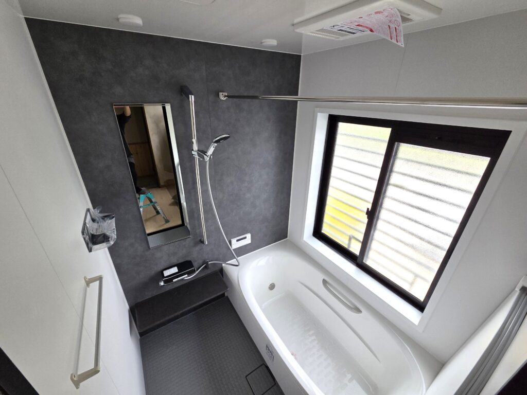 グレーと白で、とってもオシャレなお風呂が設置されました。