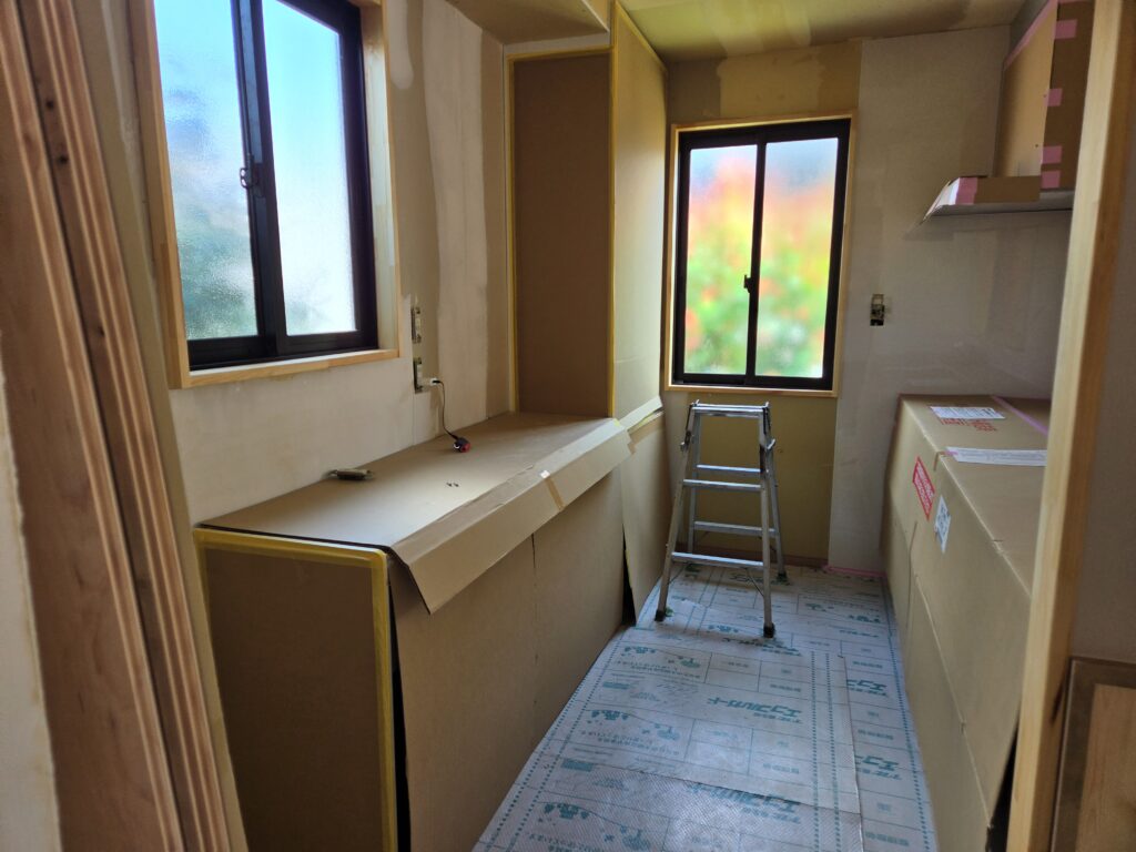 「おーい、現場監督のTさ~ん。ちょっとキッチン見たいなぁ~」とお願いしました。