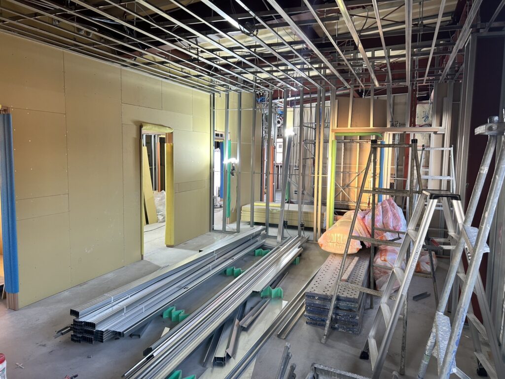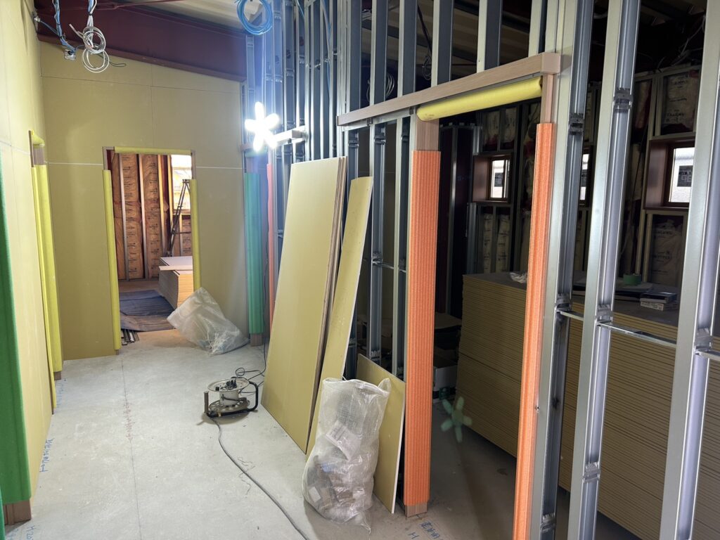 鉄骨造 石膏ボード施工中