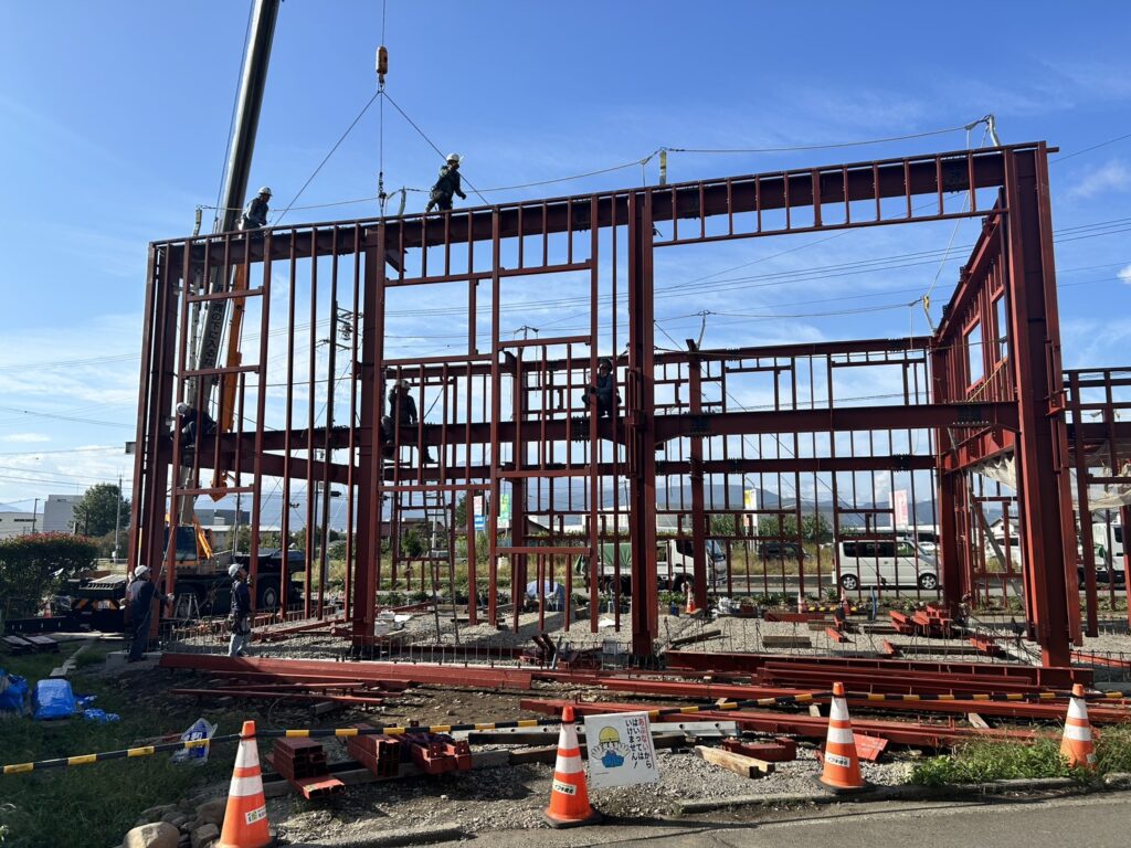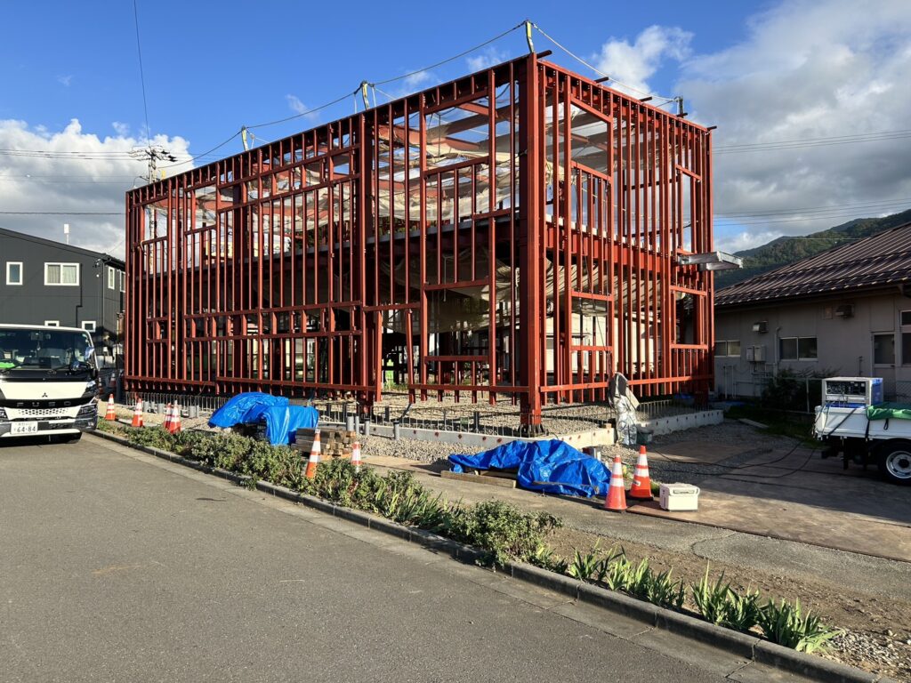 さてさて、須坂市のM社会福祉施設は建方が終了しました。