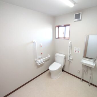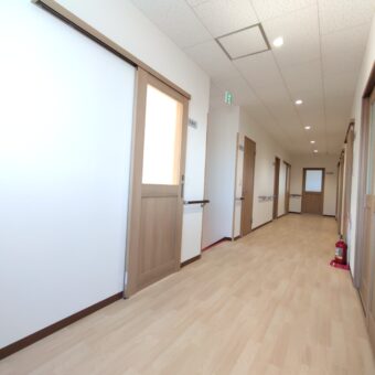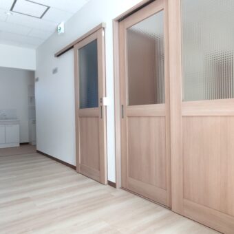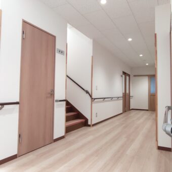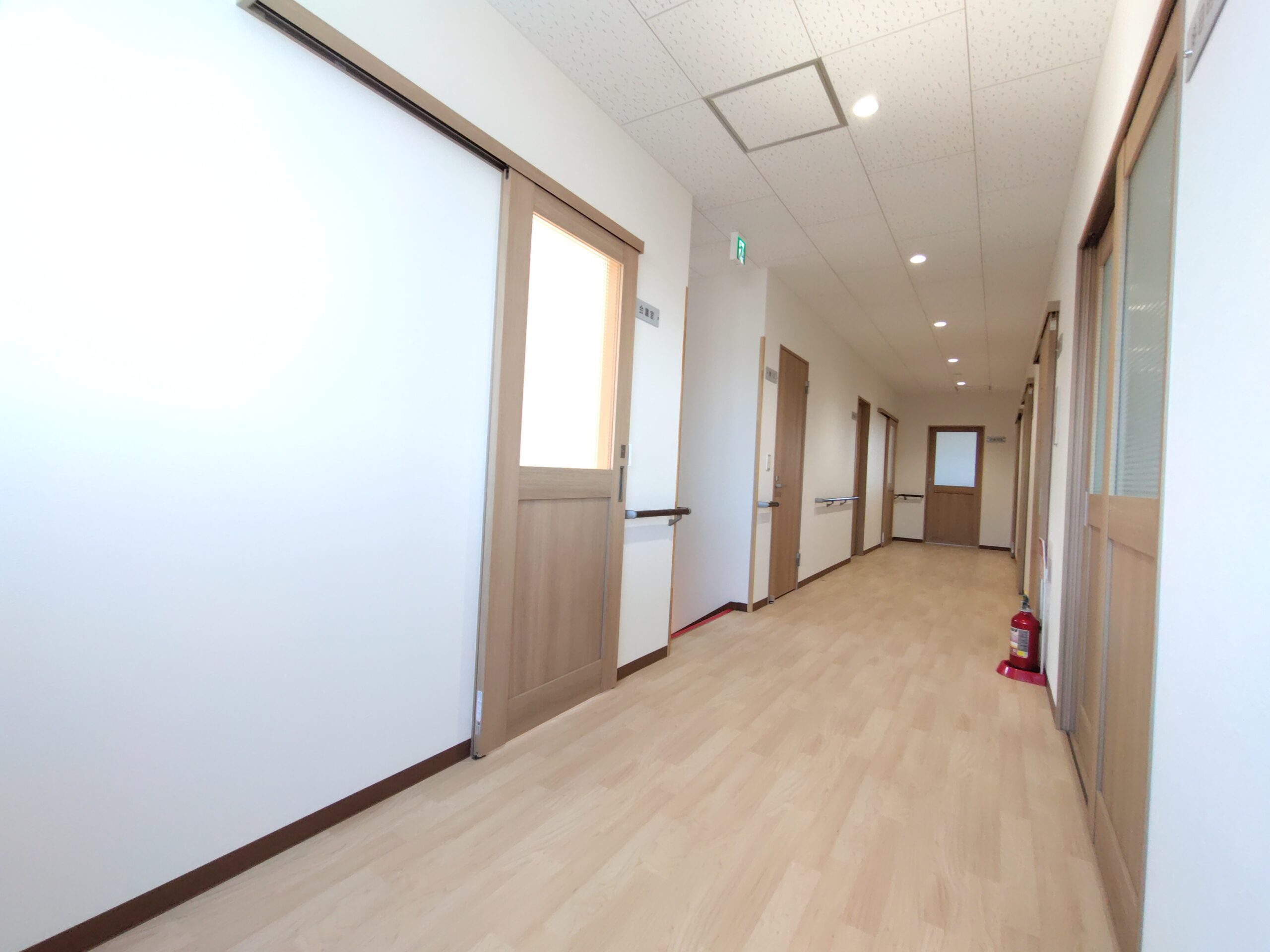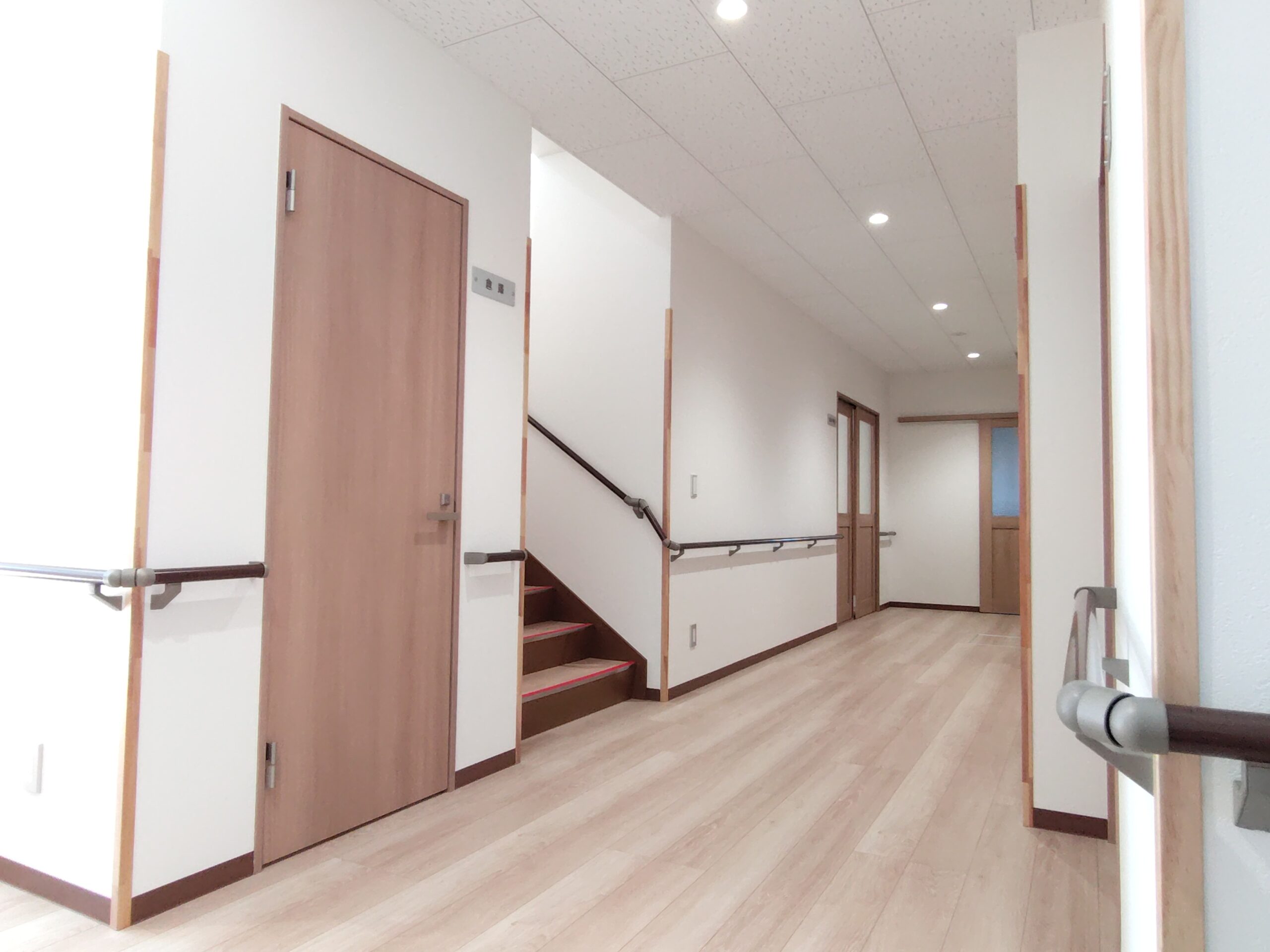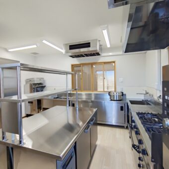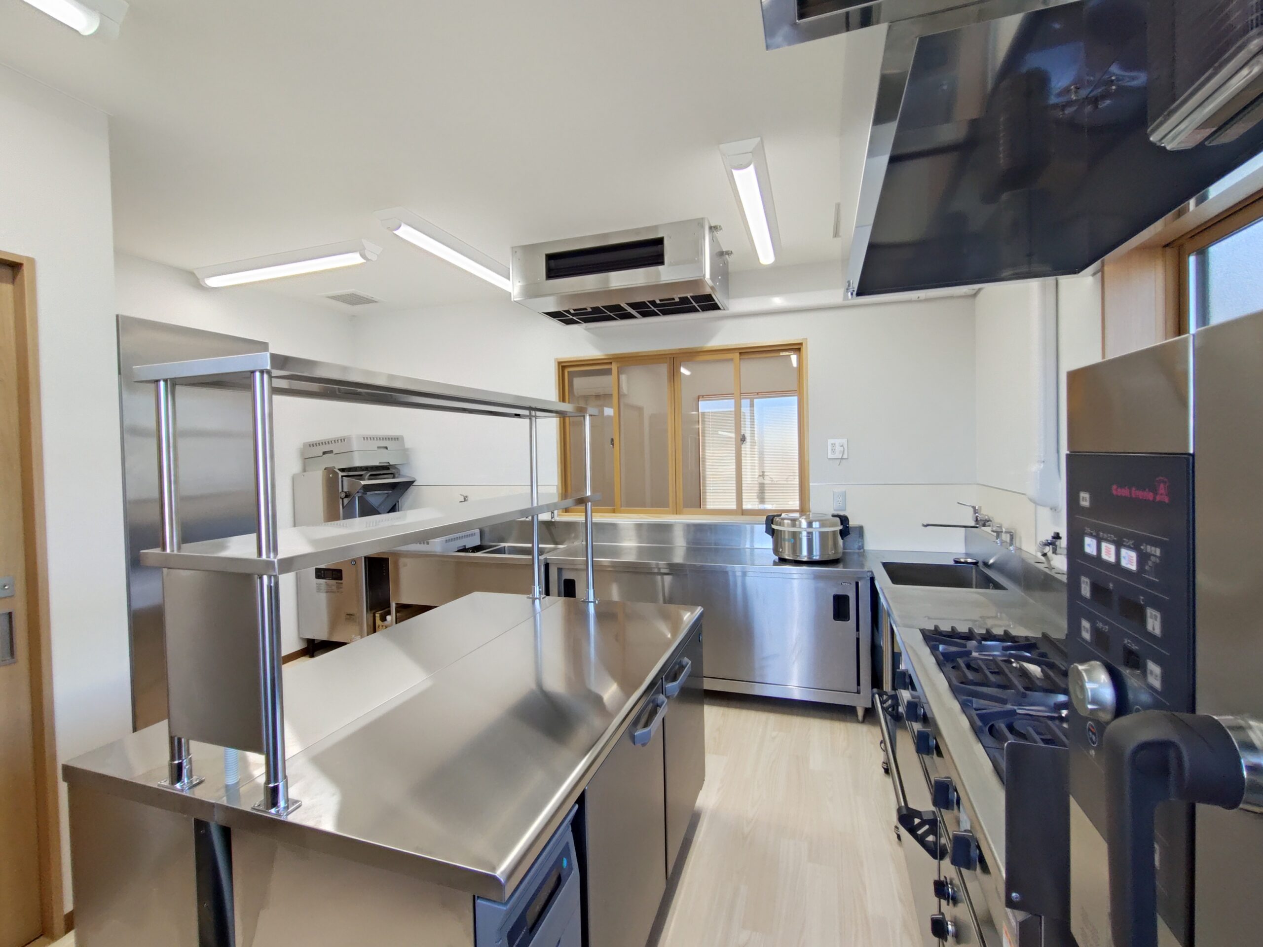 暖かな陽射しがサンサンと降り注ぎ 広々として働きやすい空間になりました。 室内はもちろんバリアフリーにし、 入口のドアを広く取り車いすの方でも 利用しやすい施設となっています。 本格的な設備を兼ね備えた厨房も完備。